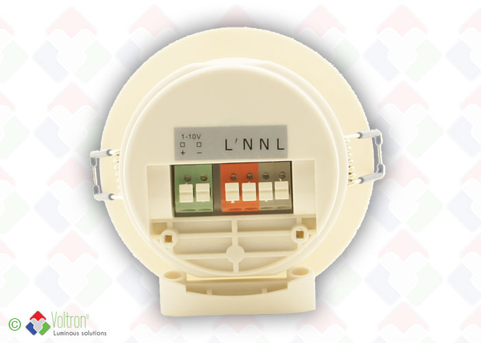 VOLTRON® SELC1 Eco Smart Controllers is een inbouw detector met ingebouwde daglichtregeling.Voorzien van 1-10V sturing.Potentiaal vrije contacten (NO/NG).Ingebouwde daglichtsensor en infrarood ontvanger.Detectieveld van 12 meter diameter bij ophaning op 6 meter hoogte.800W capacitief vermogen.Max standby verbruik van <1W.Detectieveld regelbaar op 10/50/75/100 percent.Voorzien van een wachttijd periode Test 2s/30s/1min/5min/10min/20min/30min.Standby periode instelbaar in tijd : 0s/10s/1min/5min/10min/30min/60min/+∞.Standby dimbaar level instelbaar op : 10/20/30/50 percent.Klasse IP20 - Ø93mm - H=73mm - detectiehoek tussen 30 en 150°.Te gebruiken in een omgevingstemperatuur tussen -20°C en +50°C.Steeds 5 jaar garantie. Afstandsbediening is apart bij te bestellen : SELC1-AB