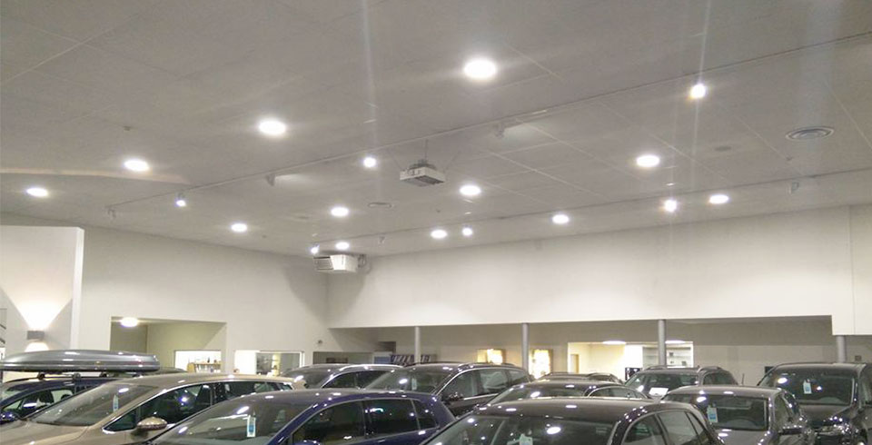 Showroom Volkswagen Vanhoonacker ondergaat een metamorfose.Een eerste showroom in de reeks waar een duurzame maar vooral energiezuinige oplossing zorgt voor 65% minder verbruik en 32% meer licht opbrengst.Er werd gekozen voor The Flat Round 33 cm inbouw als vervanging en op de rails werden de 150 Watt lampen vervangen door The Pointer 30 Watt.Als lichtkleur werd gekozen voor 4000 Kelvin (daglicht).In de burelen werden de traditionele 4*18 Watt TL lampen vervangen door The Flat Hanger 60*60. Samen met onze smart detectie resulteert dit in nog eens 20% besparing.De showroom werd voorzien van onze nieuwe SELC controller. Deze regelt het licht continu, zodat bij zonnige dagen er geen onnodige energie wordt verspild.Meer foto's en info volgen.